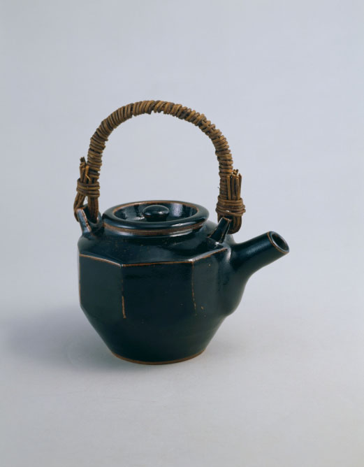 河井寬次郎:黒釉面取土瓶 (c.1950)