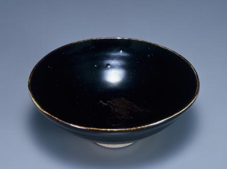 石黒宗麿:黒釉葉文碗 (c.1949-50)