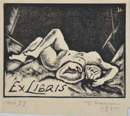 春村ただを:EX LIBRIS B(横たわる裸婦) (1935)
