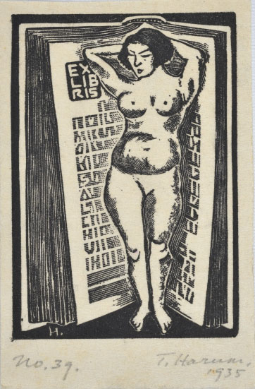 春村ただを:EX LIBRIS B(裸婦立像) (1935)