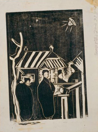北村今三:踏切夜景 (1923年7月9日)