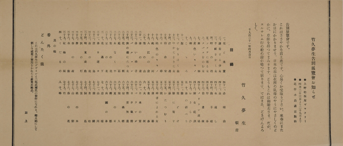 竹久夢二:「竹久夢生告別展覧会」お知らせ (1931)