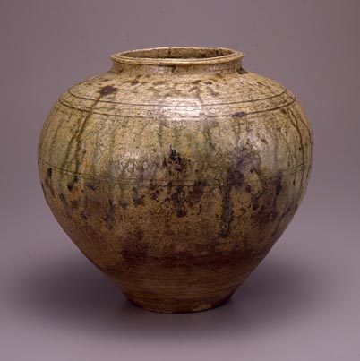 中里無庵(十二代太郎右衛門):黄唐津叩き壺 (1966)