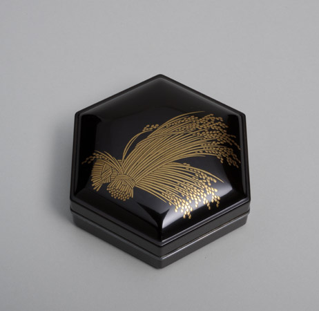 迎田秋悦:稲穂蒔絵六角香合 (1928)