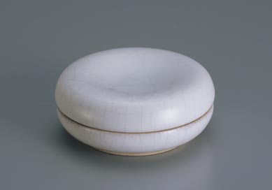 内田邦夫:マット白瓷釉凹み蓋香合 (c.1965)