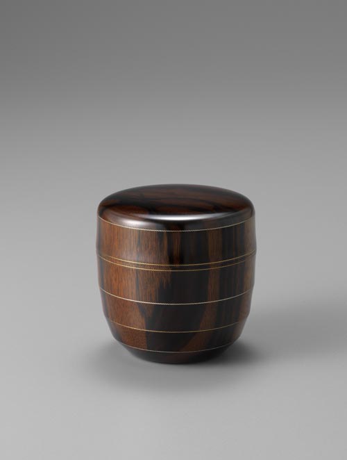 川北良造:縞黒檀金線象嵌大棗 (c.1996)