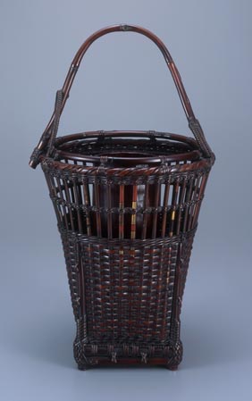 初代田辺竹雲斎:古矢竹鎧綴花籃 末廣 (c.1926-45)