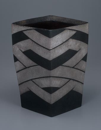 栗木達介:黒釉銀彩文角扁壺 (1980)