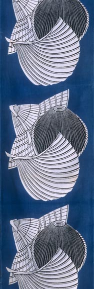芹沢銈介:沖縄笠団扇文藍地木綿着尺 (1960)