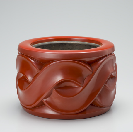 黒田辰秋:朱漆捩紐文火鉢 (1962)