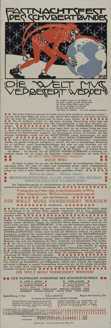 レフラー、ベルトルト:ポスター〈シューベルトブントの謝肉祭/世界は改善されねばならない〉 (c.1903)