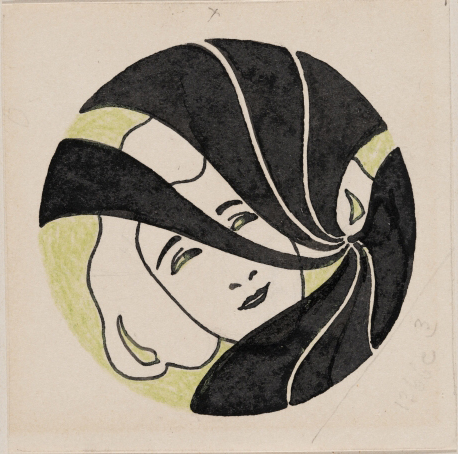 ベニルシュケ、マックス:ビネット「女の頭部」[マックス・ベニルシュケ『書籍装丁と平面模様』(『ディ・クヴェレ(泉)』第2巻)のためのデザイン案] (1901)