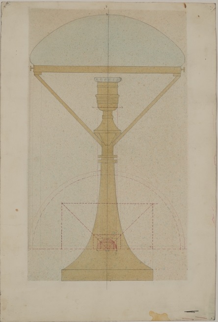 ホッペ、エミール:淡青色の傘がついた卓上ランプのデザイン (c.1910)