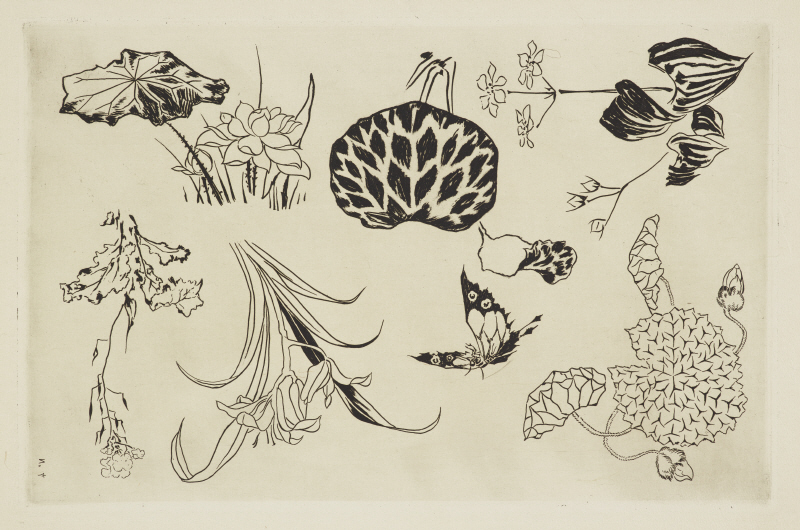 ブラックモン、フェリックス:セルヴィス・ルソーのための絵付け用エッチングNo. 4:水生植物 (1866)