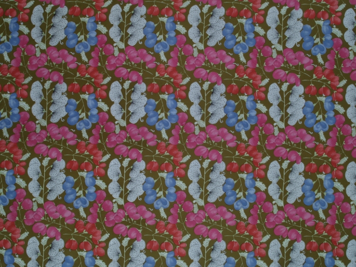 上野=リックス、フェリーツェ・“リチ”:プリント服地「スイートピー」(茶地) (c. 1955 [reproduced in 1987])