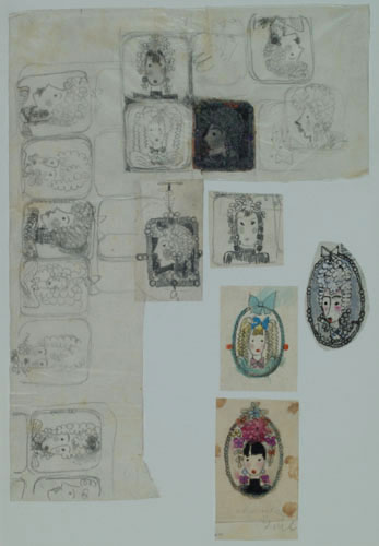 上野=リックス、フェリーツェ・“リチ”:宝石箱「娘たちⅠ・Ⅱ」下絵 (n.d.)