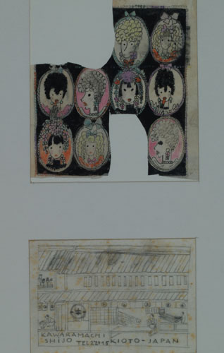 上野=リックス、フェリーツェ・“リチ”:宝石箱「娘たちII」デザイン、京都河原町店舗カード下絵 (n.d.)