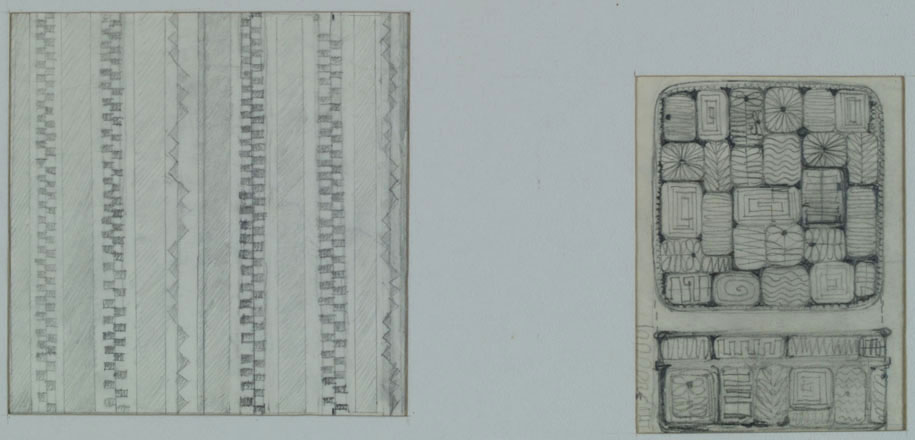 上野=リックス、フェリーツェ・“リチ”:飾箱「線の構成」下絵、飾箱「ボンボン」下絵 (n.d.)