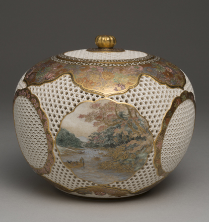 四代長谷川美山:京都名所図透彫飾壺 (Meiji–Taisho Period (1868-1926))