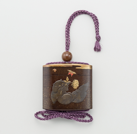 寿秀:猫蝶牡丹蒔絵印籠 (Meiji Period( 1868-1912))