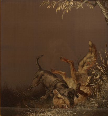 十二代西村總左衛門:猟犬狩図刺繍額 (Meiji Period (1868-1912))