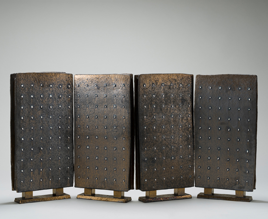 笹山忠保:金泥釉白滴紋四曲屏風 (1982)