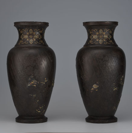 大関(山田元信):雨中鳥図花瓶 (Meiji Period (1868-1912))