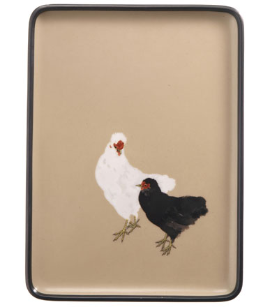 濤川惣助:鶏図長方皿 (Meiji Period(1868-1912))
