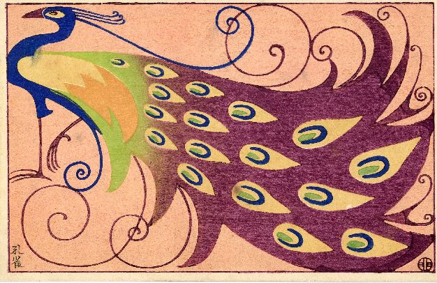 杉浦非水:絵はがき 孔雀 (c.1915-16)