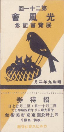 杉浦非水:第21回光風会招待券 (1934)
