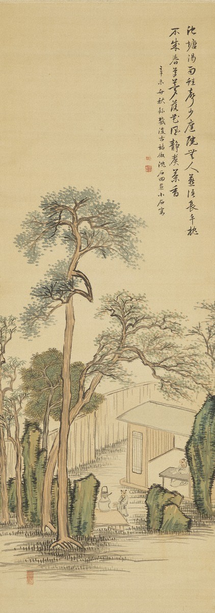 巨勢小石:倣沈石田「煎茶山水図」 (1871)