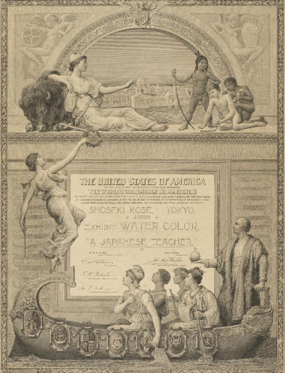 巨勢小石:シカゴ・コロンブス万国博覧会賞状 (1893)