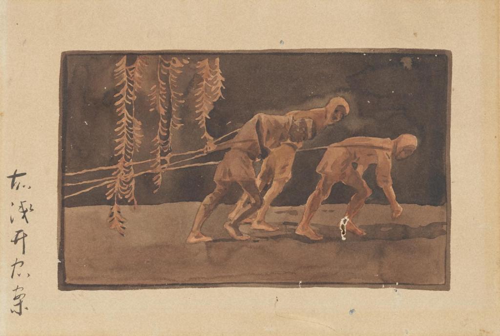 浅井忠:高瀬川船曳図陶製額板図案 (Late Meiji( c. 1890-1912))