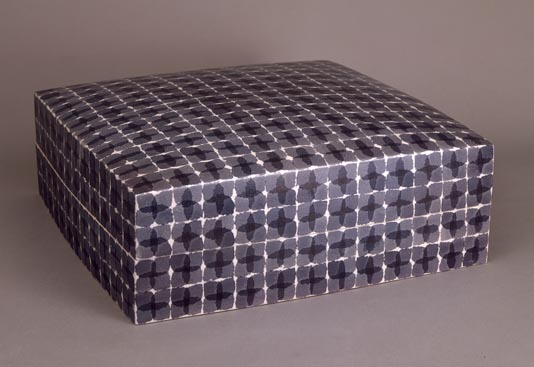 江口勝美:和紙染紺絣刳り抜き飾陶箱 (1979)