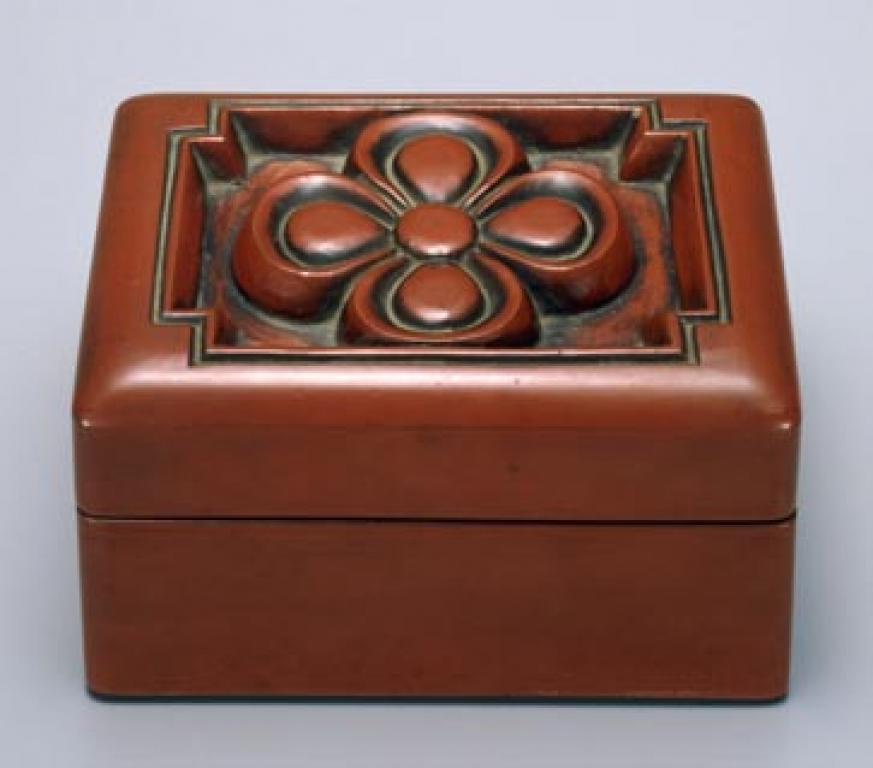 黒田辰秋:赤漆彫花文箱 (c.1935)