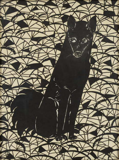 田口善国:漆透かし絵 犬 (1985)