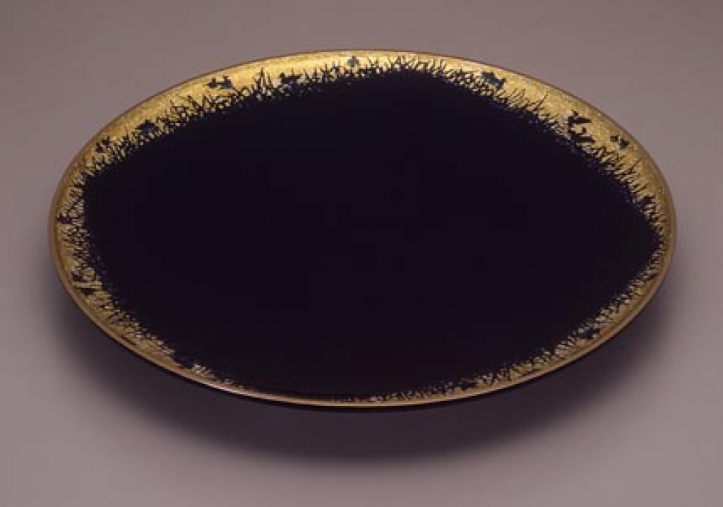 佐々木英:蒔絵彩切貝乾漆盤 水ぬるむ (1984)