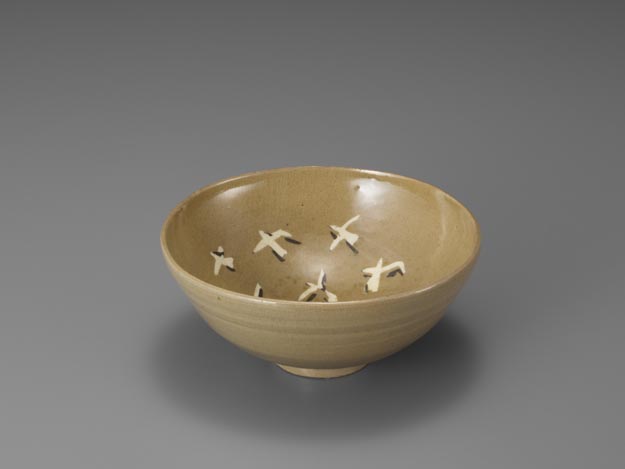 石黒宗麿:青磁象嵌鳥文茶碗 (c.1950-59)
