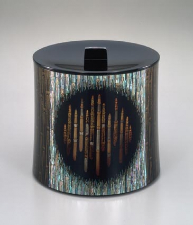 田口善国:とくさ蒔絵切貝水指 (1984)