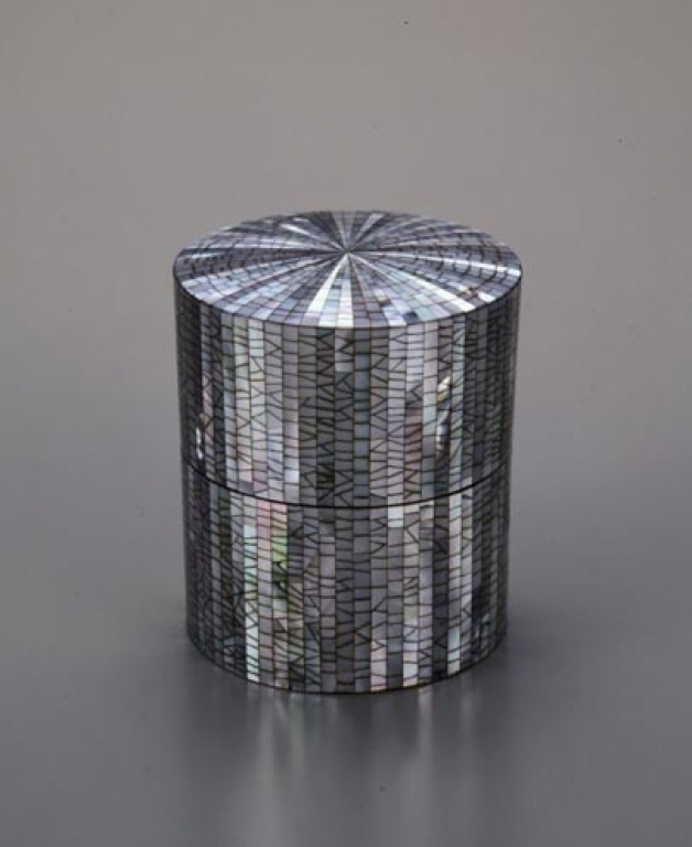 黒田辰秋:螺鈿白蝶縞中次 (c.1974)