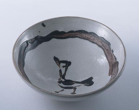 石黒宗麿:黒絵鳥文茶碗 (c.1950-59)