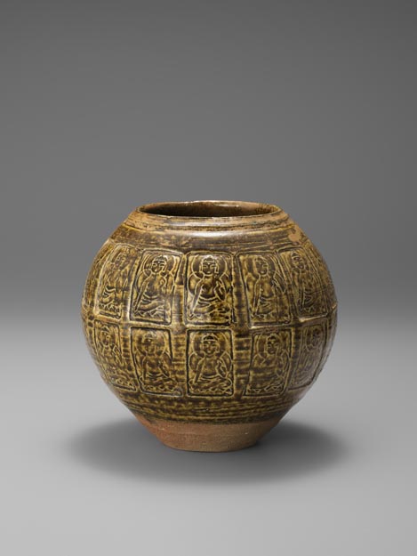 石黒宗麿:飴釉百印仏文壺 (c.1950-59)