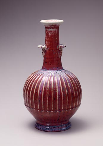 加藤土師萌:辰砂葡萄文耳鶴首花瓶 (1942)