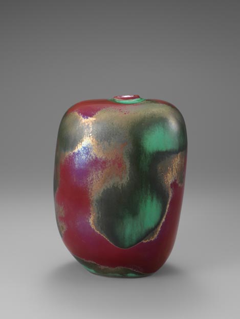 森野嘉光:緑釉窯変扁壺 (1986)
