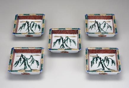 富本憲吉:色絵柳模様角鉢 (1942)