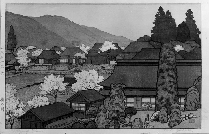 吉田遠志:「風景四題」より 梅の村 (1951)