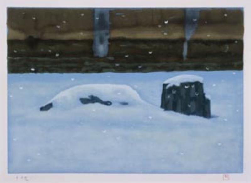 東山魁夷:版画集『京洛小景』より 雪の石庭 (1971)