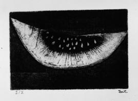 中本達也:「中本達也銅版画全集II」より 22. 西瓜 (1960)