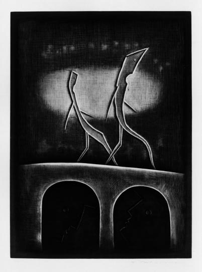 深沢幸雄:陸橋の上を歩く人 (1984)