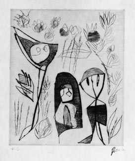 難波田史男:銅版画集『ある日の幻想』より 作品−13 (1971/72)